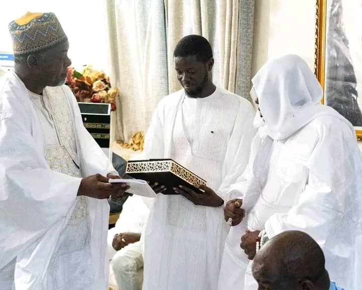En signe de respect, le Président Faye a reçu un exemplaire du Saint Coran en reliure spéciale, accompagné d’une réplique de la Kaaba.
