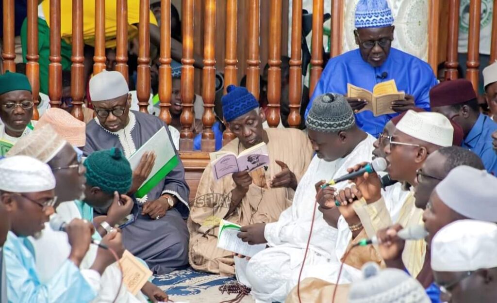 À l’approche du Maouloud, les communautés Tidiane du Sénégal se plongent dans une période de profonde dévotion avec les séances de burd, tenues pendant les dix nuits précédant le 12 Rabi Al Awal, jour célébrant la naissance du Prophète Mohamed (PSL). Ce rituel est un moment fort de spiritualité, où les fidèles chantent et récitent le célèbre poème « Qasidat al Burda » (Poème du manteau) de l’Imam Boussairi, un grand poète et saint égyptien du XIIIe siècle.