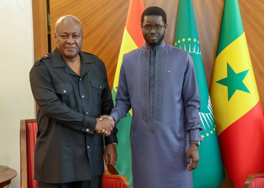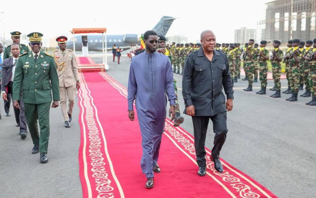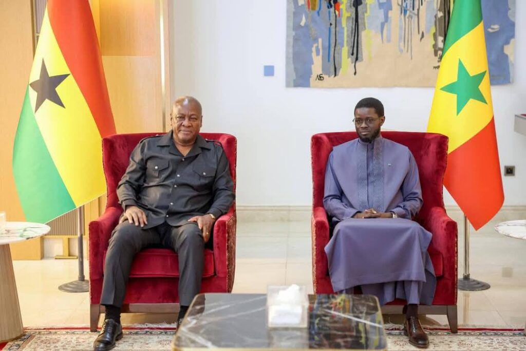 Président de la République du Ghana, dans le cadre d’une visite de travail. Les deux Chefs d’Etat ont souligné l’excellence des relations d’amitié et de coopération unissant le Sénégal et le Ghana, appuyées par une convergence de vues sur la démocratie, la bonne gouvernance et la défense des droits fondamentaux. Les discussions ont porté sur le renforcement de la coopération économique et commerciale, avec l’objectif d’approfondir et de diversifier les échanges dans des secteurs stratégiques tels que les hydrocarbures, la défense, la sécurité, l’éducation, la santé et le tourisme. Les deux parties ont également abordé la situation régionale, en mettant l’accent sur la nécessité de consolider la paix et la stabilité au Sahel et au sein de la CEDEAO. Cette visite illustre la volonté commune de renforcer un partenariat déjà solide, au service du développement et de la prospérité de leurs peuples respectifs. La Présidence de la République se réjouit des perspectives ouvertes par cette rencontre et réaffirme son engagement à poursuivre une coopération étroite avec le Ghana dans l’esprit de solidarité et d’intégration africaine.