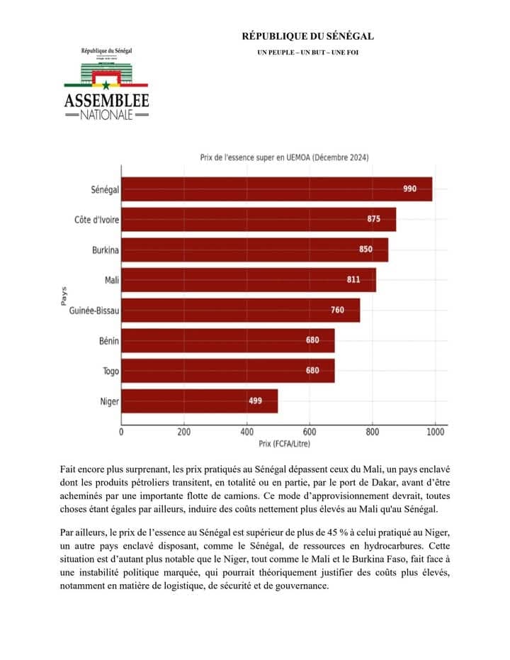 « Chers compatriotes, je partage avec vous la question écrite que j’ai adressée au ministre des Énergies, du Pétrole et des Mines au sujet du prix du carburant à la pompe. »