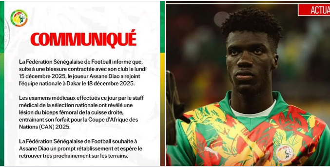 CAN 2025 : ASSANE DIAO OFFICIELLEMENT FORFAIT
