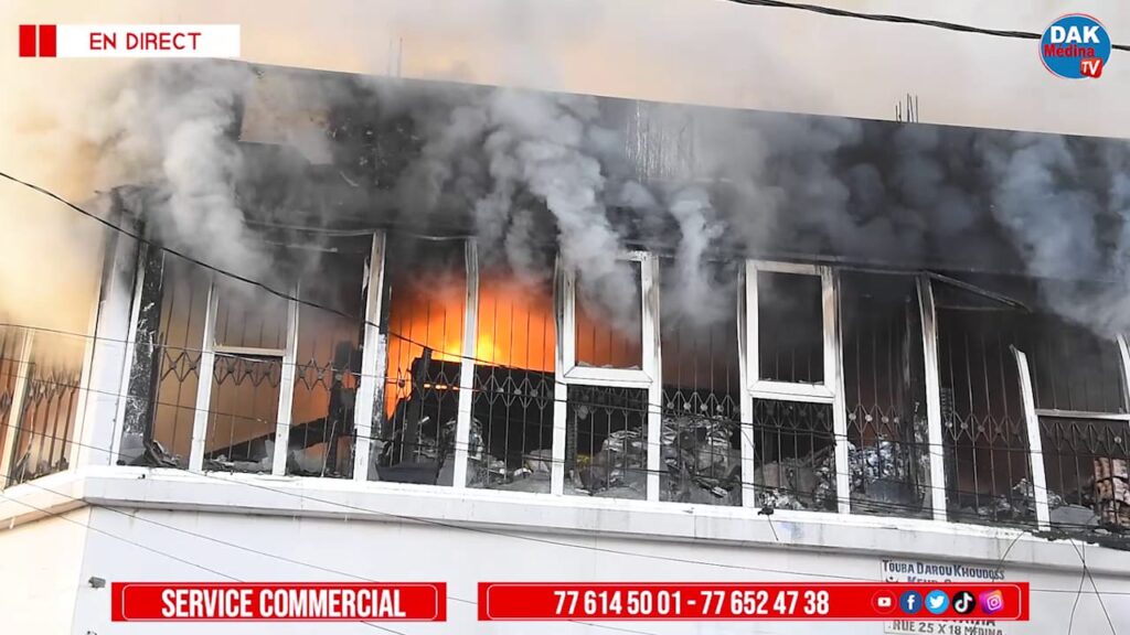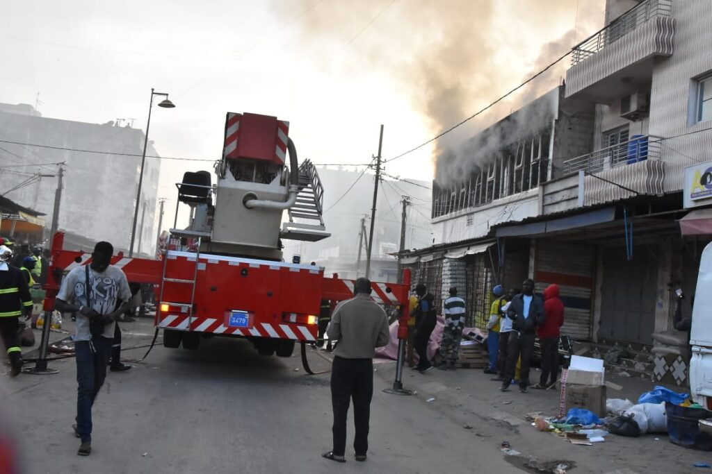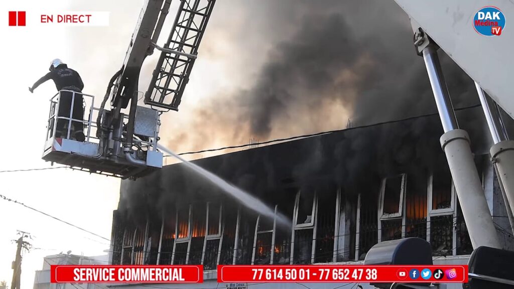 Un violent incendie s’est déclaré le vendredi 23 janvier, aux alentours de 18 heures, à la Médina, précisément à la rue 25 x 18, au niveau du marché Tilène. Le sinistre a touché le magasin agroalimentaire appartenant à Pape Moussa Gueye, dont le dépôt situé au premier étage a été entièrement ravagé par les flammes. Selon plusieurs témoignages recueillis sur place, l’incendie serait parti d’un feu allumé pour chasser un essaim d’abeilles qui avait élu domicile dans les parages. Le feu aurait rapidement échappé à tout contrôle, atteignant le dépôt où étaient stockés des produits inflammables, notamment de l’eau de Javel, des seaux de savon en poudre, ainsi que d’importantes denrées alimentaires, favorisant ainsi une propagation rapide et violente des flammes. L’incendie, d’une rare intensité, a duré plusieurs heures et dégagé une épaisse fumée visible à plusieurs mètres, plongeant le quartier dans la panique. Une importante mobilisation des sapeurs-pompiers, estimée à une soixantaine d’éléments, appuyés par plusieurs engins et véhicules d’intervention, dont des camions-citernes d’eau, a été nécessaire pour maîtriser le feu et éviter sa propagation aux bâtiments voisins. De nombreux éléments de la police étaient également présents sur les lieux afin de sécuriser le périmètre, réguler la circulation et faciliter l’intervention des secours. Aucune perte en vie humaine n’a été signalée. En revanche, les dégâts matériels sont considérables. Le propriétaire évoque une perte de marchandises d’une valeur inestimable pour l’instant, compte tenu de l’ampleur des destructions. Malgré ce lourd préjudice, Pape Moussa Gueye dit rendre grâce à Dieu et s’en remettre à la volonté divine, soulignant qu’aucune vie humaine n’a été perdue. Une enquête devrait être ouverte afin de déterminer avec précision les circonstances exactes de cet incendie.